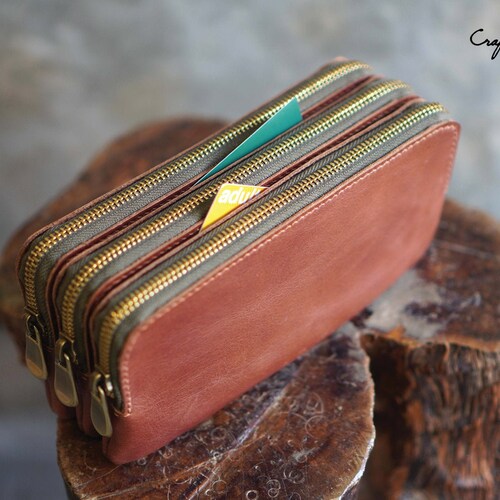 Leather Bag Pattern Pdf Files Triple Zipper Pouch With How Etsy